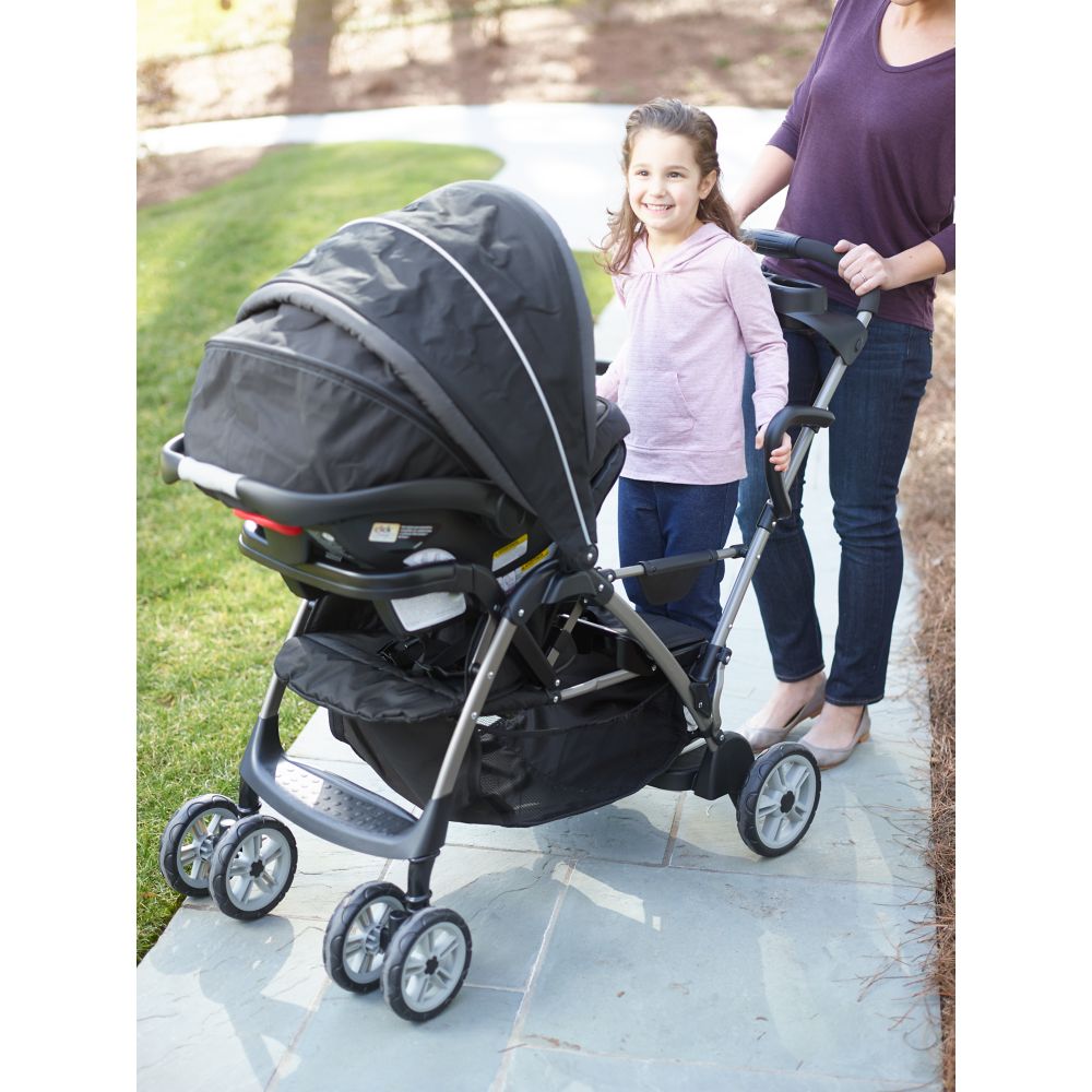 Ideal for walking and running errands with two children the graco room for 2 classic connect and click connect stand and ride stroller offers front and rear seats that each hold a child up to 50 pounds.